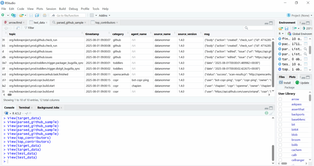 Acknowledgement: I extend my sincere gratitude to Justin Wheeler for connecting me with the Fedora Data Working Group (FDWG), and to Michael Winters and K Naraian for their guidance, discussion, and support throughout the design and validation of this data analysis pipeline.