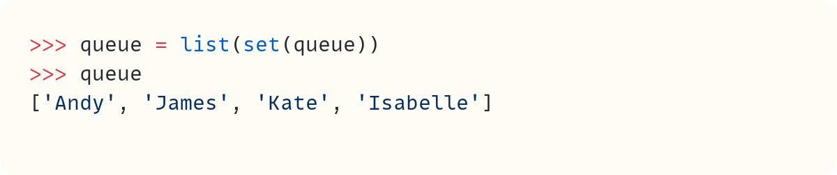 >>> funnel = ["Jonathan", "Michael", "Samantha", "Jessica", "Daniel"]