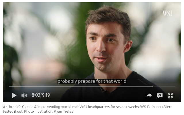 You probably heard about the Wall Street Journal story where they had a snack-vending machine run by a chatbot created by Anthropic.